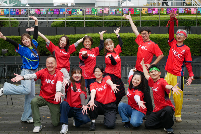 NECダンサーズは、NECグループの社員とその家族、パートナー企業様など、多様なメンバが集まるダンスチームです。世代や障がい有無等に関係なく、ダンスを通じたインクルージョン、地域活性化を実践し、共生社会の実現を目指しています。